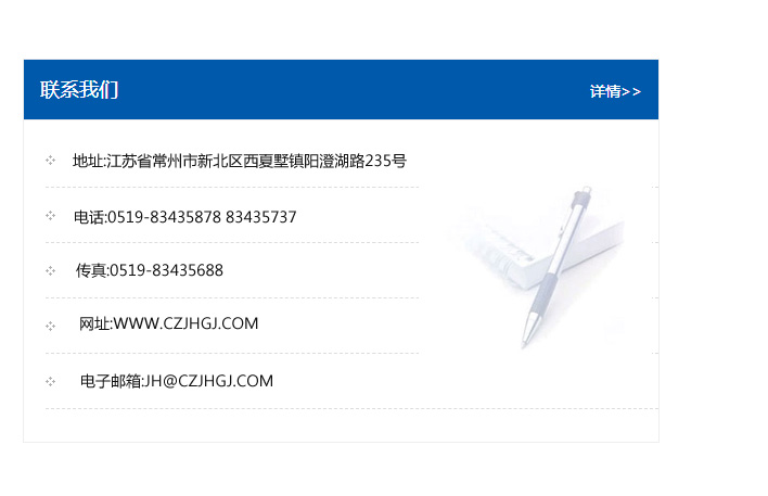 傳真:0519-83435688    郵編:213135    網址:WWW.czjhgj_com.zlfrp.com    電子郵箱:JH@czjhgj_com.zlfrp.com